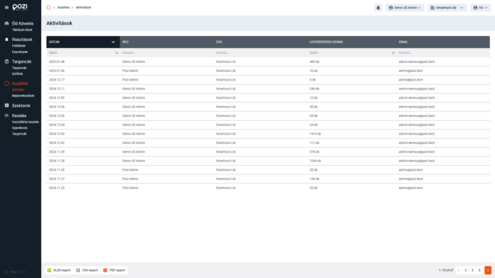 Ebben a menüpontban az egyes bejelentkezéseket tudjuk nyomon követni időpontok és felhasználók szerint rendezve.