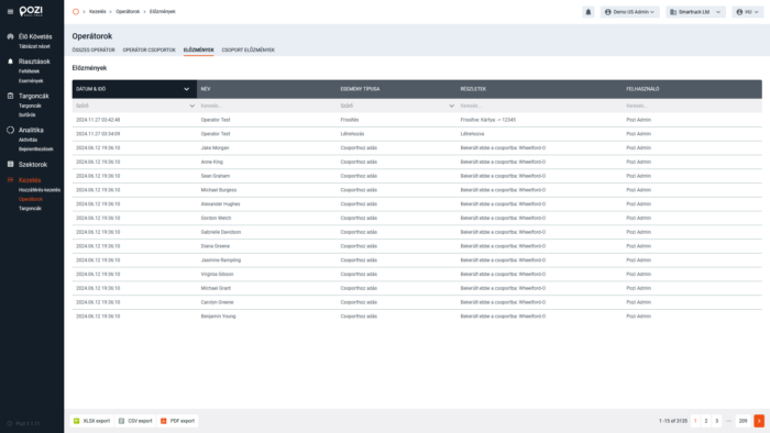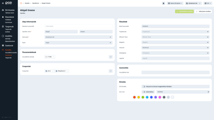 A megfelelő felhasználói jogosultságokkal az operátorokat a SmarTruck Webes felület „Kezelés” menüjében kezelheti.