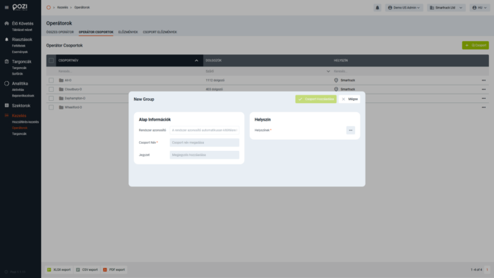 Új csoport létrehozásához kattintson a zöld „Új csoport” gombra az Operátorcsoportok képernyőn! Az előugró menüben: