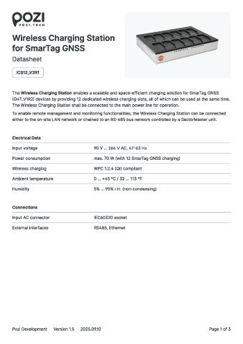 Wireless Charging Station for SmarTag GNSS Datasheet