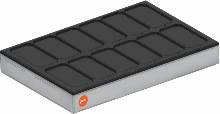 The Wireless Charging Station wirelessly charges the SmarTag GNSS EX units (QI-compatible). Wireless charging greatly simplifies the tasks related to picking up and returning the SmarTag GNSS EX units, as charging starts automatically by simply placing them in their dedicated slots.